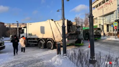 В центре Тюмени автобус протаранил мусоровоз — видео
