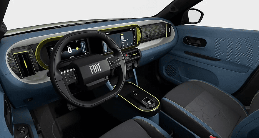 Интерьер «зеленого» кросс — хэтчбека Grande Panda в версии Pop получил сиденья, отделанные черно — синей тканью с рельефными буквами, составляющими слово Panda. Также модель оснастили яркими декоративными вставками, информационно — развлекательной системой с сенсорным экраном диагональю 10,25 дюйма, боковыми зеркалами с электроприводом и подогревом. Емкость тяговой батареи составляет 44 кВтч, а максимальный запас хода на одном заряде — примерно 320 км.