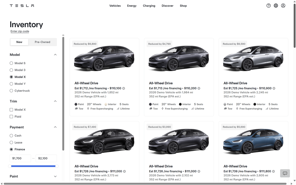Сегодня самые дешевые серийные автомобили Model S и Model X – это бывшие демонстрационные экземпляры, использовавшиеся автосалонами, и цены на них начинаются примерно от 106 000 и 111 000 долларов соответственно. Тем временем новая Model S с полным приводом стоит 109 990 долларов, а Model X Plaid в топовой комплектации – 129 900 долларов.