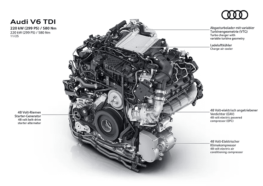 Нынешние Audi Q5 и Audi A6 первыми получат двигатель V6 TDI EA897evo4. Двигатель EA897 находится на вооружении с 2010 года, и компания Audi пока не собирается с ним расставаться, так как многие европейцы по — прежнему считают дизель лучшим выбором для автомобиля премиум — класса.