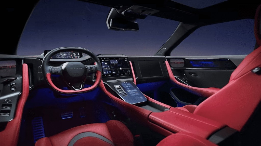 Интерьер обоих автомобилей изготовлен в футуристическом стиле. В дополнение к цифровой панели устройства, салон имеет огромный мультимедийный экран системы и дополнительный дисплей для пассажира, который вместе создает «эффект кино». Вместо боковых зеркал электромобили получали видеокамеры.