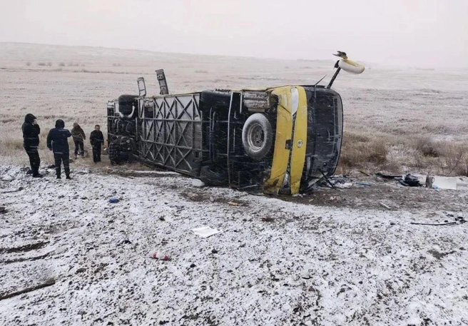 Авария произошла на 417-м километре трассы. По предварительным данным, водитель автобуса не справился с управлением и съехал с проезжей части, из-за чего транспорт перевернулся.