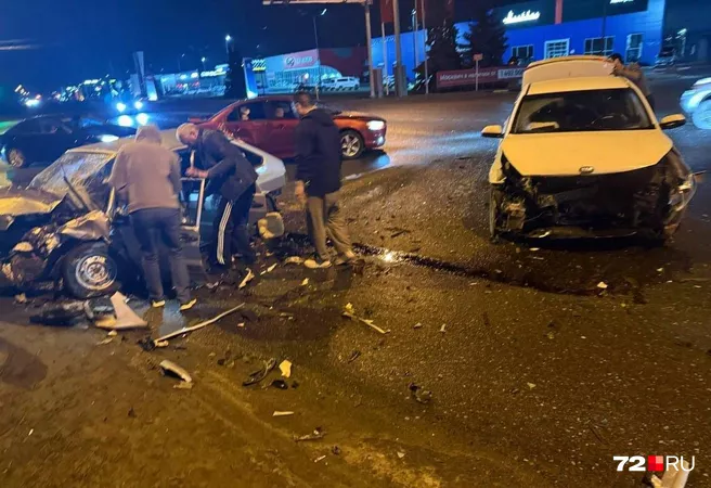 «Лобовое столкновение. Мы ехали на KIA Rio, у второй машины (LADA — Прим.ред.) была сильная скорость. Думаем, он пронесся на красный сигнал светофора, потому что остальные машины в этот момент стояли. Мы отделались ушибами, а в „четырке“ ехали два брата. Как нам сказали в ГАИ, у одного из них переломаны все ноги», — рассказала она 72.RU.