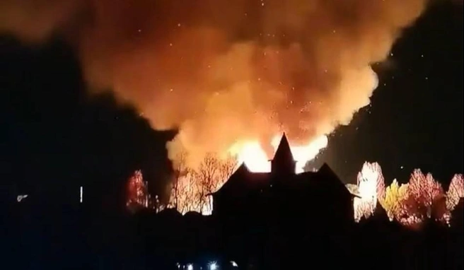 Загорелся трактир в туристическом комплексе «Абалак» — видео очевидцев