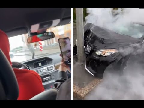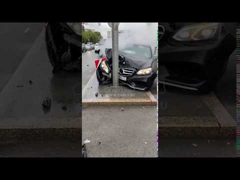 В Тюмени ребята разбили Мерседес об столб в прямом эфире. ДТП